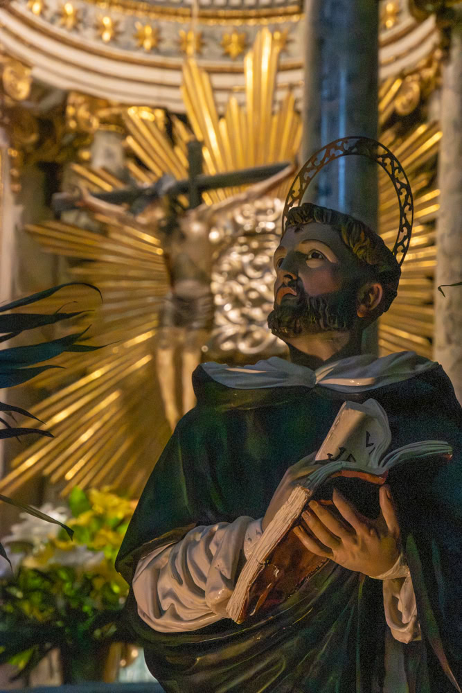 This emotional intensity is powerfully reflected in the city’s churches and their dramatic visual narratives of the lives of Jesus and the saints. The Passion of Christ is often portrayed in stark, realistic—sometimes even crude—detail, while the Virgin Mary and the saints appear dressed in fine, almost luxurious garments, framed by opulent altars and elaborate tributes to both the saints and the high ecclesiastical dignitaries of their time.