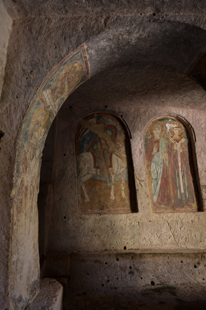 Dug into the walls of natural canyons made of easy to carve limestone, they take advantage of a protected position and a favourable microclimate, which has benefitted medieval inhabitants as much as the preservation of painted murals.