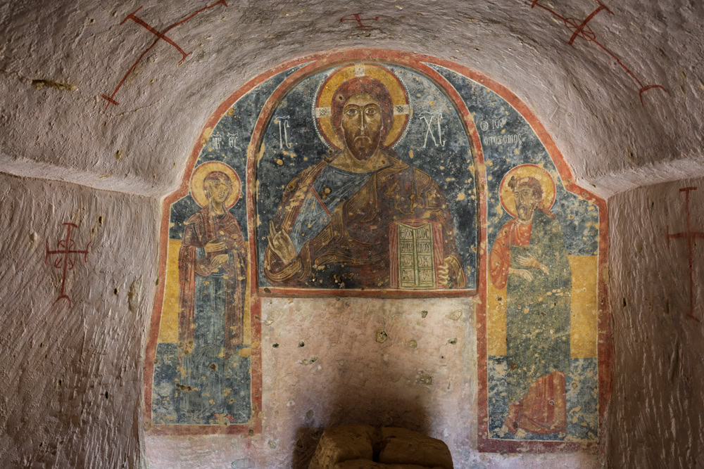 Albeit those Cave Churches and surrounding villages were abandoned shortly after Medieval times, those Churches are still attended by worshippers on key dates of the religious calendar, with occasional visits of Christian Orthodox worshippers from the East of Europe, to pay their tribute to Saint Nicholas, venerated locally and widely painted in several Cave Churches.
